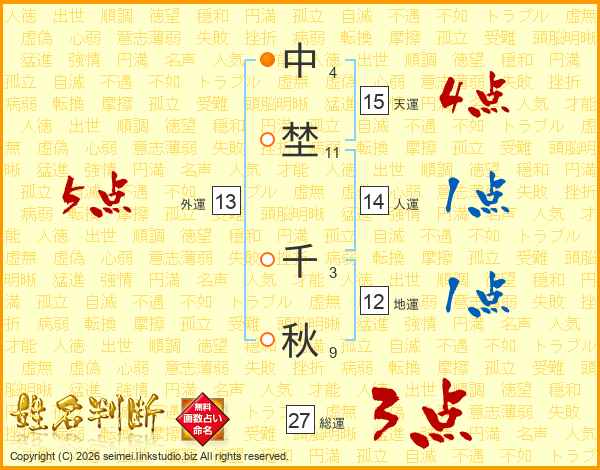 中(4画)埜(11画) 千(3画)秋(9画)