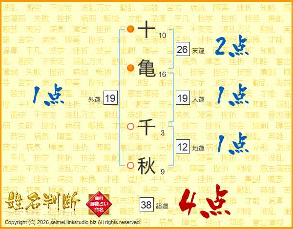 十亀千秋さんの人運は19画の1点!