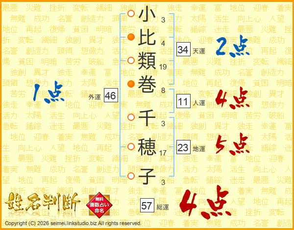 小比類巻千穂子さんの総運は57画の4点!