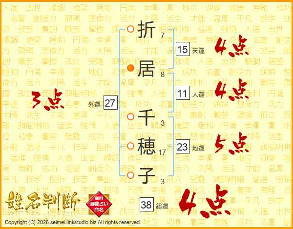 折居千穂子さんの総運は38画の4点!
