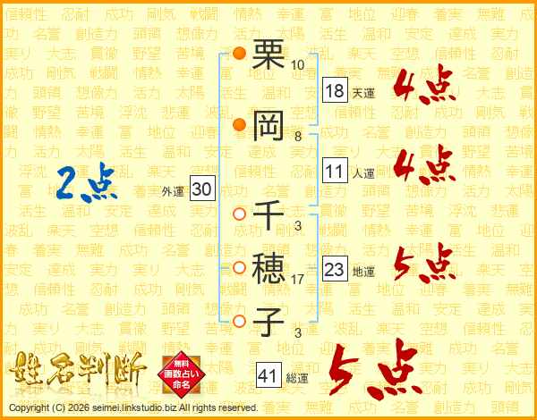 栗岡千穂子さんの総運は41画の5点!