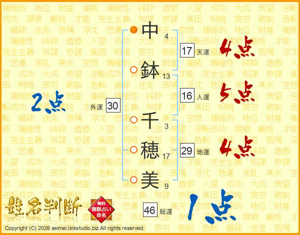 中鉢千穂美さんの総運は46画の1点!