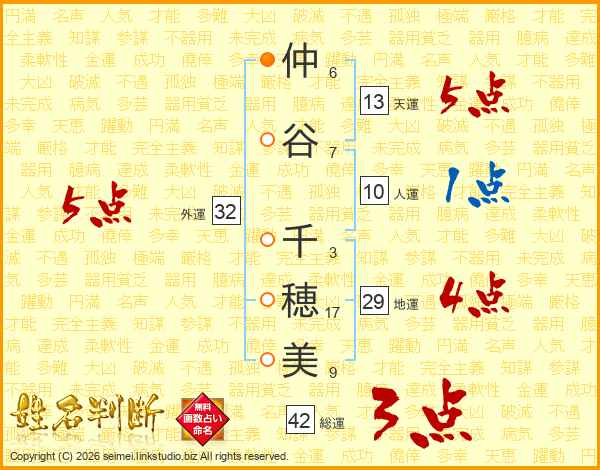 仲(6画)谷(7画) 千(3画)穂(17画)美(9画)