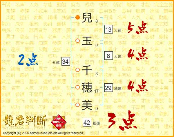 兒(8画)玉(5画) 千(3画)穂(17画)美(9画)