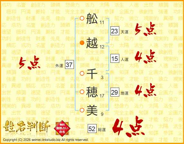 舩越千穂美さんの総運は52画の4点!