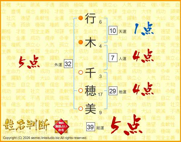 行木千穂美さんの総運は39画の5点!