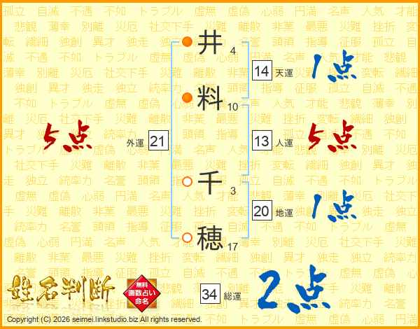 井(4画)料(10画) 千(3画)穂(17画)