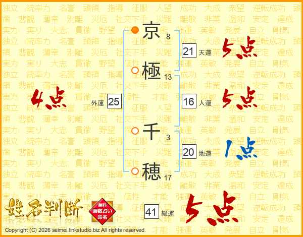京(8画)極(13画) 千(3画)穂(17画)
