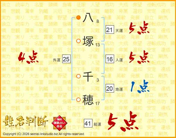 八塚千穂さんの総運は41画の5点!