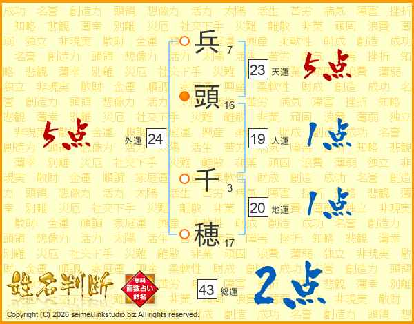 兵頭千穂さんの総運は43画の2点!