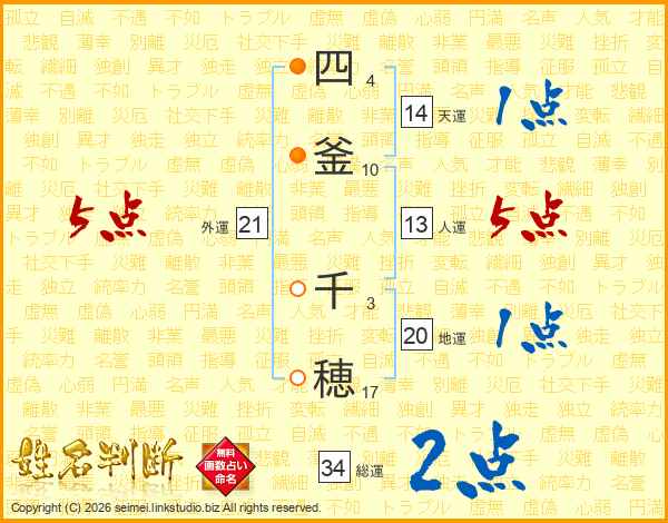 四釜千穂さんの天運は14画の1点!