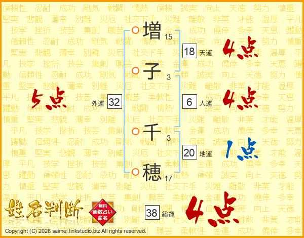 増子千穂さんの総運は38画の4点!