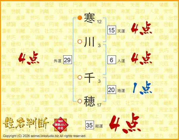 寒(12画)川(3画) 千(3画)穂(17画)