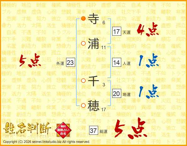 寺(6画)浦(11画) 千(3画)穂(17画)