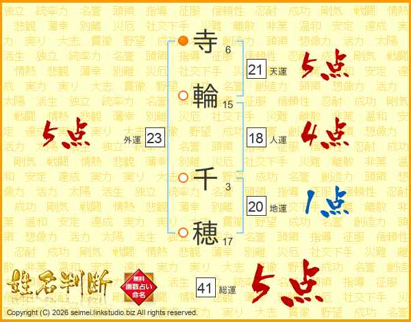 寺(6画)輪(15画) 千(3画)穂(17画)