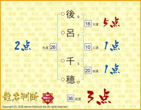 後呂千穂さんの外運は26画の2点!