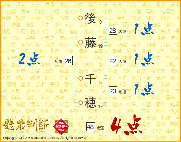 後藤千穂さんの総運は48画の4点!