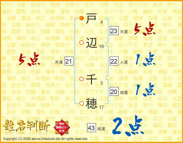 戸辺千穂さんの外運は21画の5点!