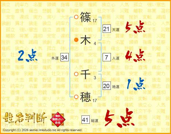 篠木千穂さんの総運は41画の5点!