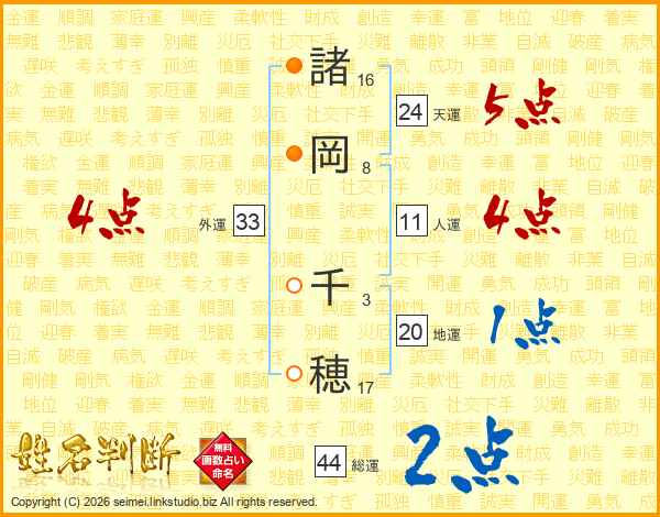 諸岡千穂さんの総運は44画の2点!
