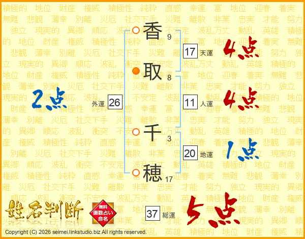 香取千穂さんの総運は37画の5点!