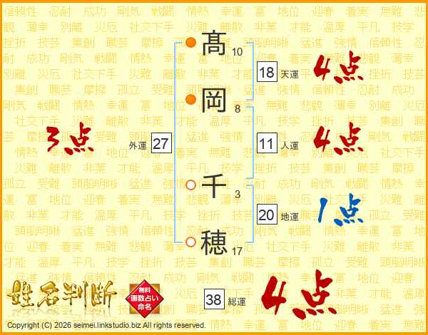 髙岡千穂さんの総運は38画の4点!