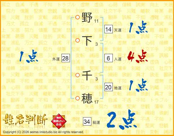野下千穂さんの天運は14画の1点!