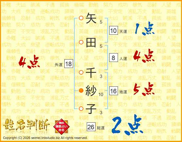 矢田千紗子さんの総運は26画の2点!