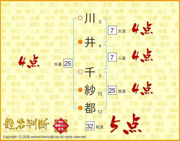 川井千紗都さんの地運は25画の4点!