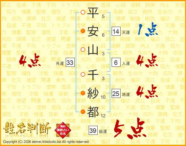 平安山千紗都さんの外運は33画の4点!