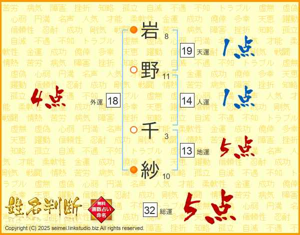 岩野千紗さんの総運は32画の5点!