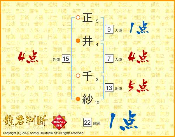 正井千紗さんの総運は22画の1点!