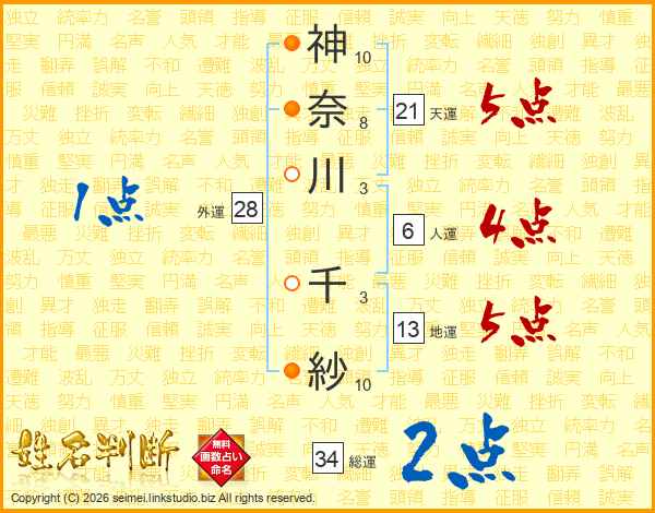 神奈川千紗さんの総運は34画の2点!