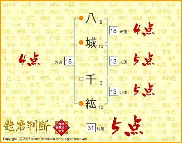 八城千紘さんの総運は31画の5点!