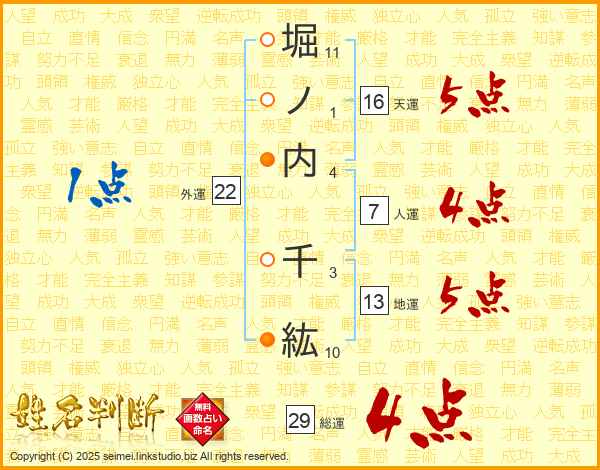 堀ノ内千紘さんの総運は29画の4点!