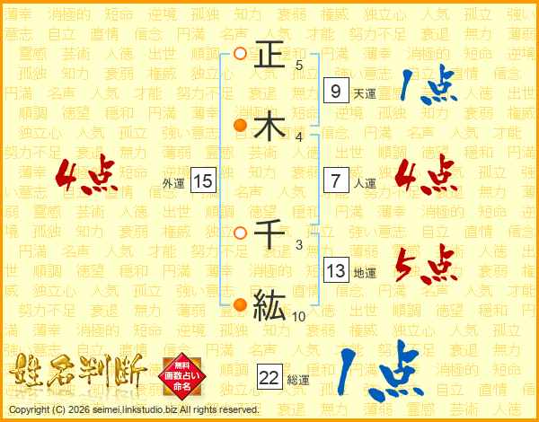 正木千紘さんの外運は15画の4点!