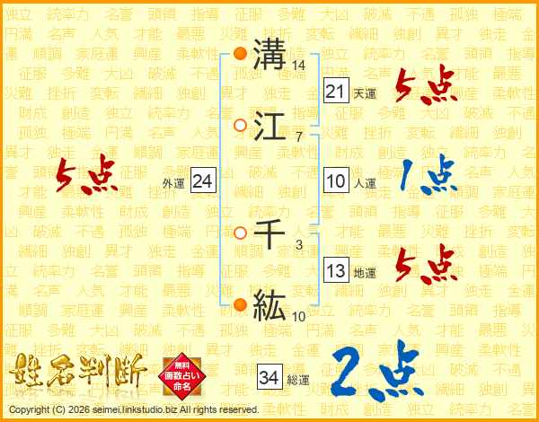 溝(14画)江(7画) 千(3画)紘(10画)