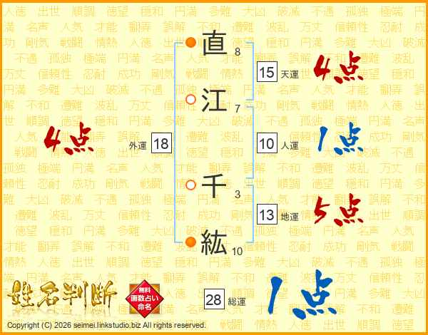 直江千紘さんの外運は18画の4点!