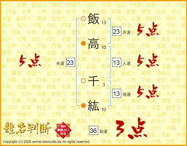 飯高千紘さんの外運は23画の5点!