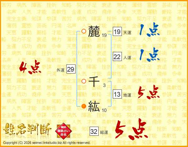 麓千紘さんの外運は29画の4点!