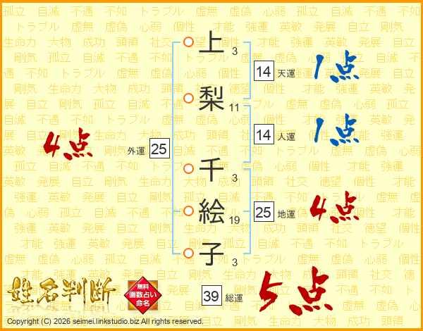 上梨千絵子さんの総運は39画の5点!