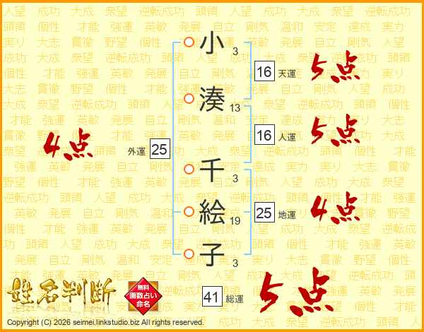 小(3画)湊(13画) 千(3画)絵(19画)子(3画)