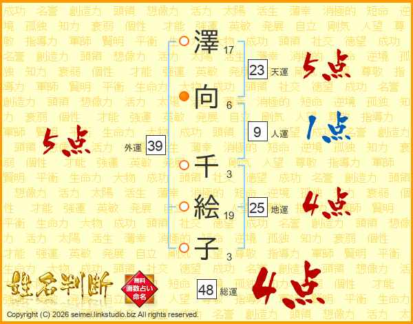 澤向千絵子さんの外運は39画の5点!