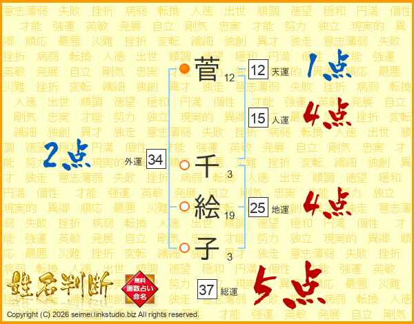 菅千絵子さんの総運は37画の5点!