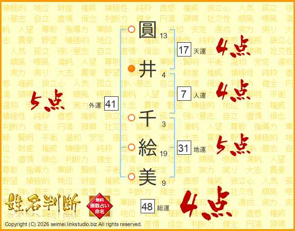圓井千絵美さんの天運は17画の4点!