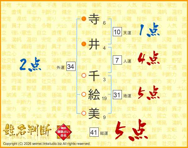寺(6画)井(4画) 千(3画)絵(19画)美(9画)