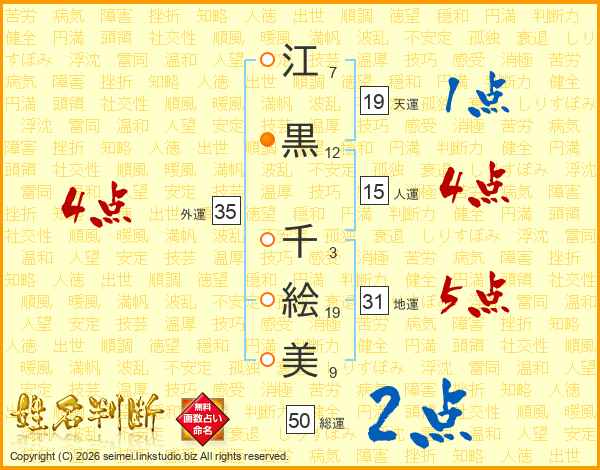 江黒千絵美さんの外運は35画の4点!