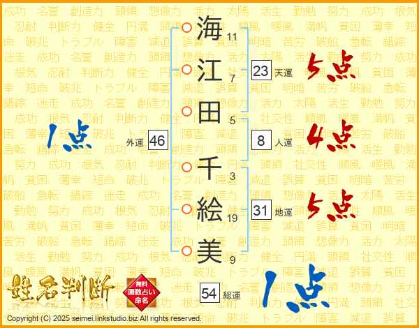 海江田千絵美さんの外運は46画の1点!
