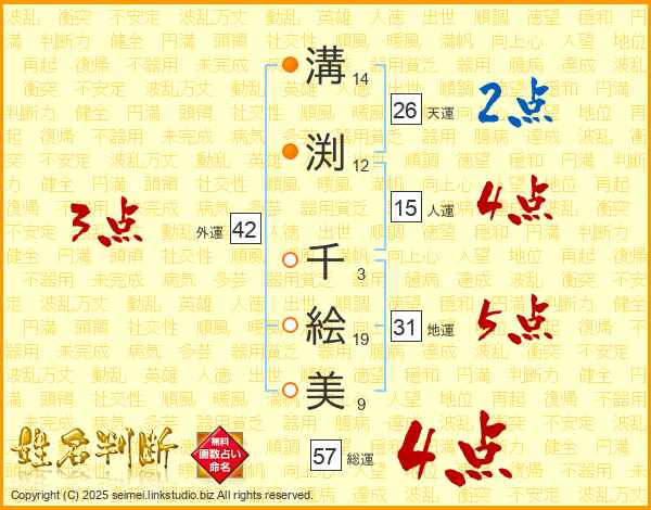溝(14画)渕(12画) 千(3画)絵(19画)美(9画)