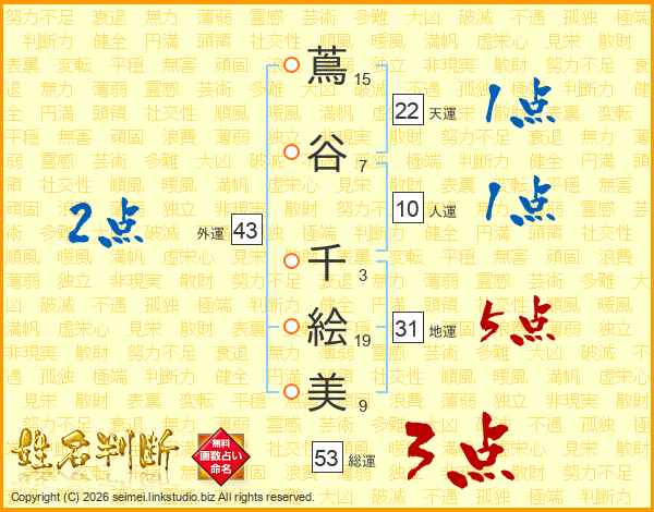 蔦谷千絵美さんの天運は22画の1点!